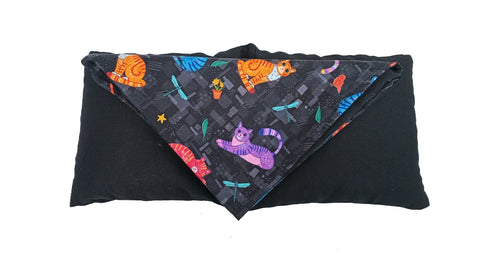 This is a extra long wheat bag in black, approximately 56 cm long × 13 cm wide, with 4 divided sections & a washable cover.